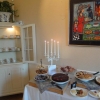 Nu är allt piffat och klart inför det första julbordet imorgon. Granen inne är klädd och granen i parken är tänd och snön ligger vit på taken....